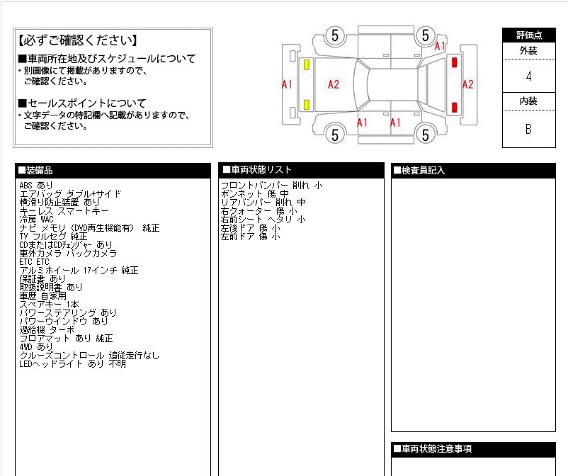 | Comment | Genuine navigation system (CD/DVD/BT) Full Seg TV Rear view camera Cold weather specification Automatic high beam Automatic high beam Automatic high beam Lane keep assist Spare key ETC Cruise control Heated door mirrors Winker mirror Genuine engine starter Genuine floor mat Genuine door visor |