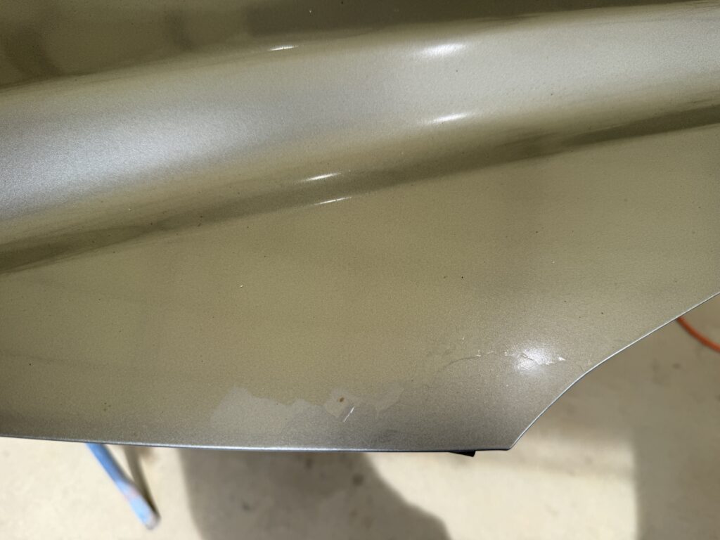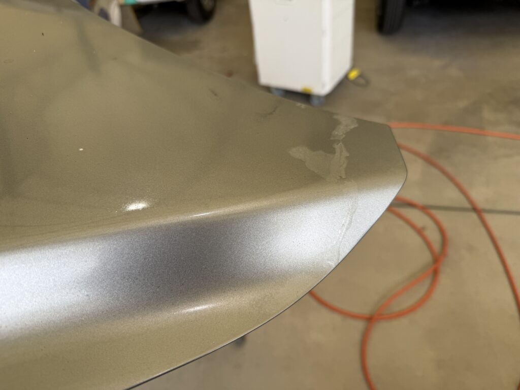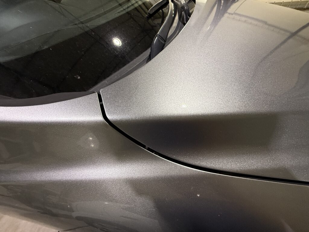 ルーフやボンネット、スポイラーなど紫外線が当たりやすい面は、経年により塗装面が痛み、クリアが剥げてしまう事があります。屋内駐車であれば問題ないことが多いですが、野外の場合だとどうしても防げない事象です。